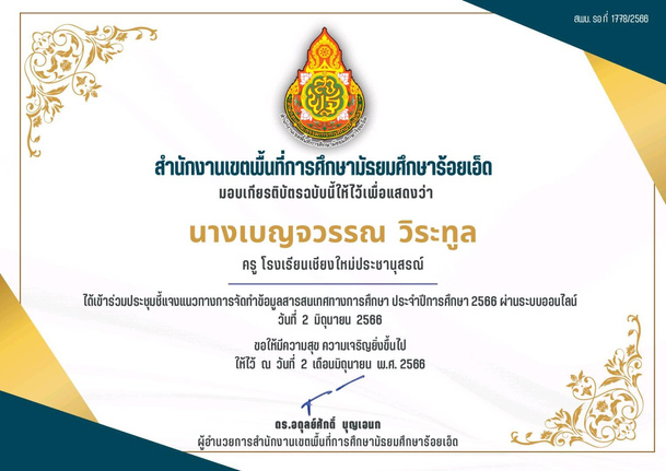ชื่อ นางเบญจวรรณ นามสกุล วิระทูล